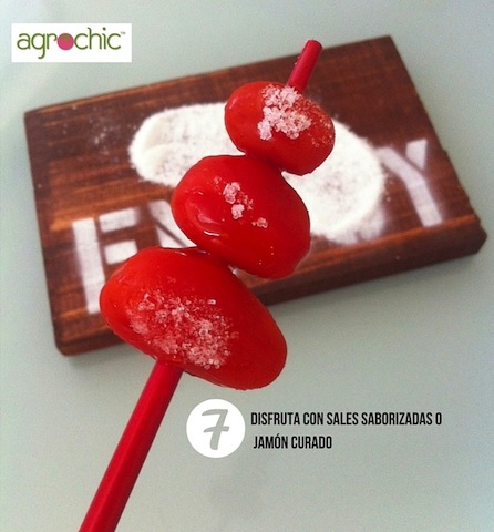 Esta es una estupenda receta para servir previo a un coctel y/o durante el fin de semana. Puedes utilizar tomates uva o cherry. Recuerda mantener este aperitivo alejado de los niños, y déjale saber a tus invitados que los tomates ‘están bautizados’. Puedes comerlos solos, sazonados con sal, o combinándolos con un rico jamón curado.